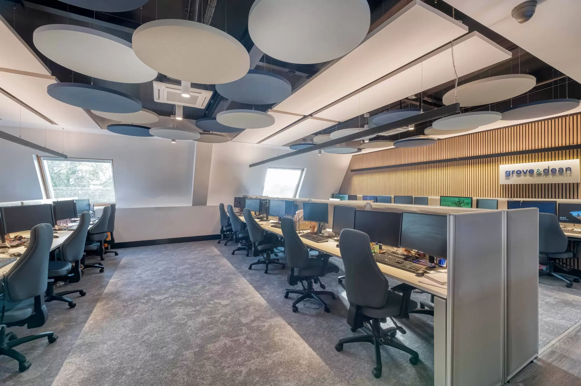 Grove & Dean Insurance company approached ‘Spatial Design Architects’ to design and project manage their new call centre HQ quarters in Essex.