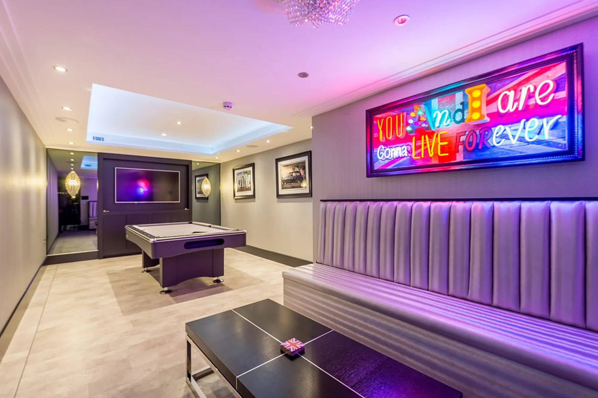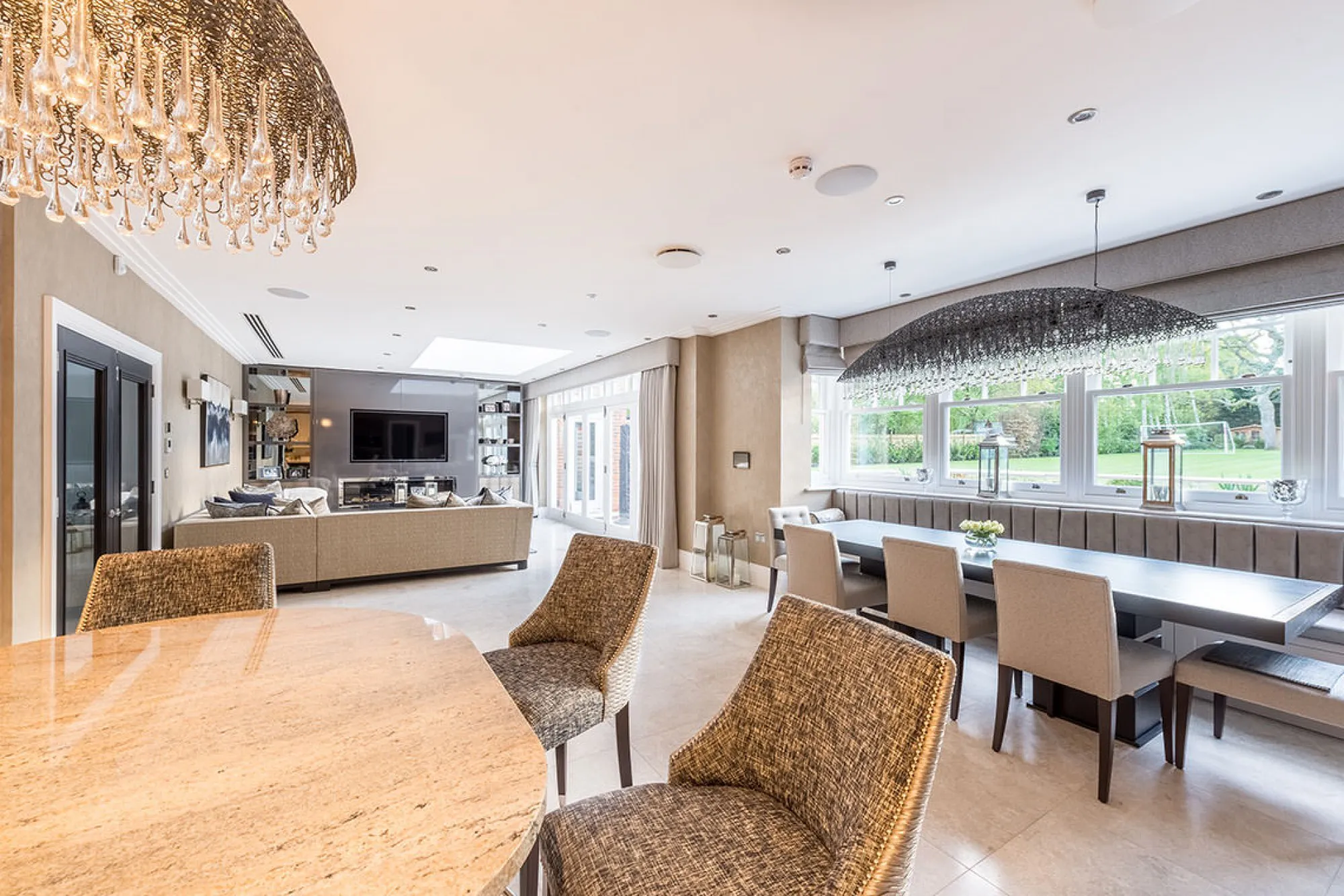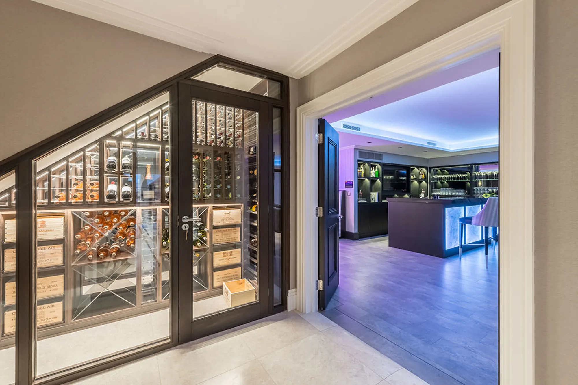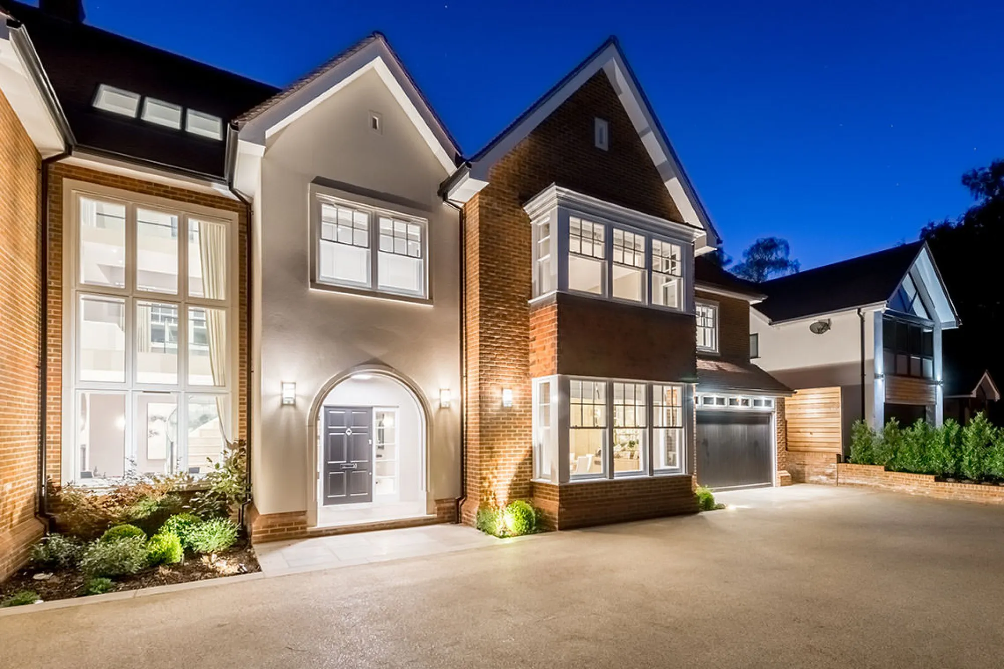 Traditional materials for the construction externally were enhanced by the beautiful soft and hard landscaping and integrated BBQ and seating area. The high-end interiors compliment the original thought process and provides a great home. The project included a basement that includes a mirrored gym, pool room, cinema room, bar, and a fantastic, glazed wine cellar under the stairs.