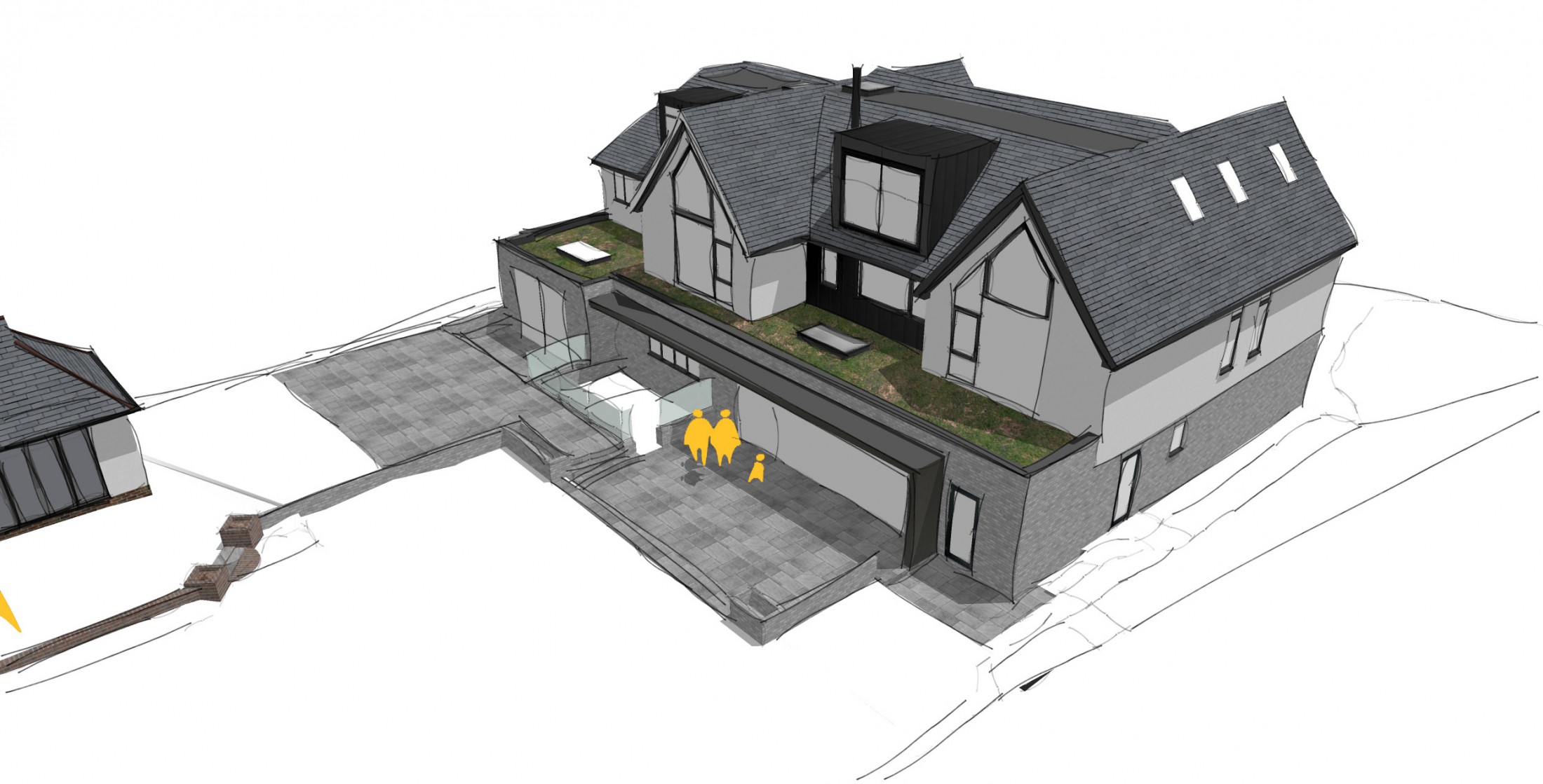 We have designed, gained planning permission, building regulations approval, the tendering process and selected a main contractor for the new build replacement family home on Hutton Mount.