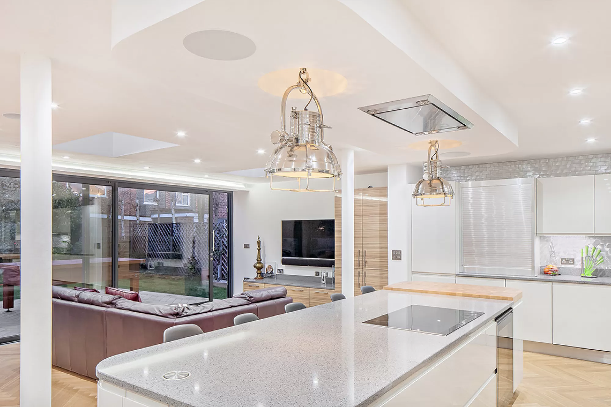 This project involved the complete reconfiguration of the existing house as well as an extension. The brief was to encompass the family’s modern lifestyle with a contemporary overhaul. The ground floor space was to be reconfigured to create a large, open plan living area for the kitchen, dining and family room. The rear of the house was extended approx 4 metres.